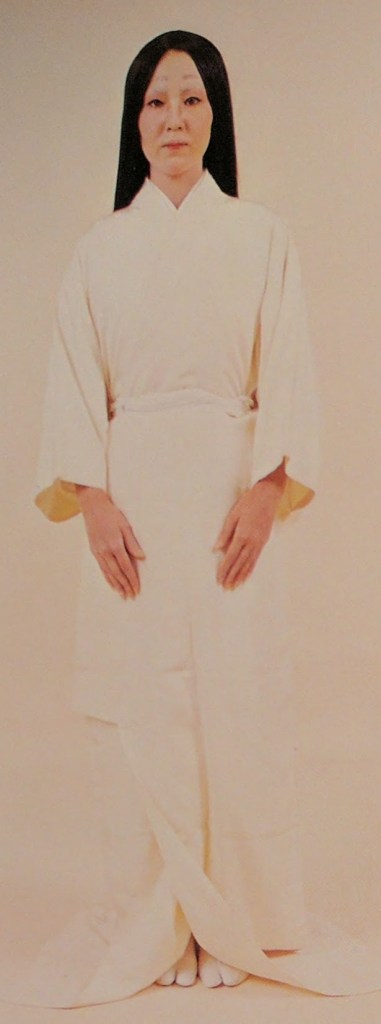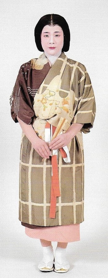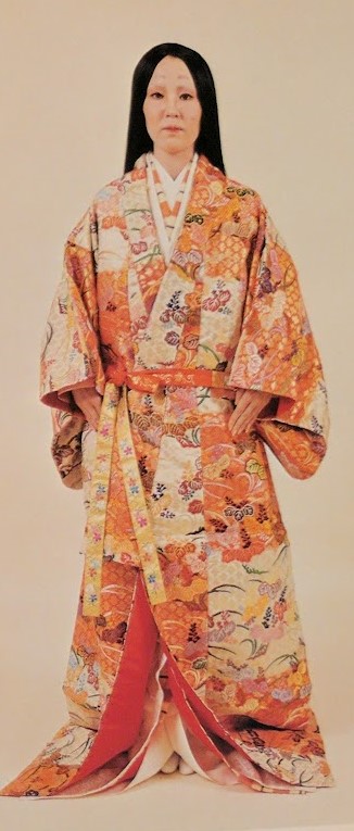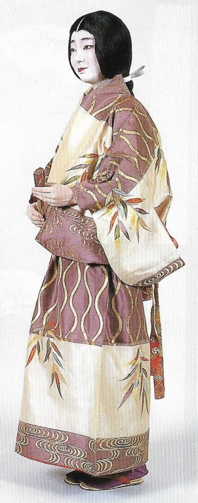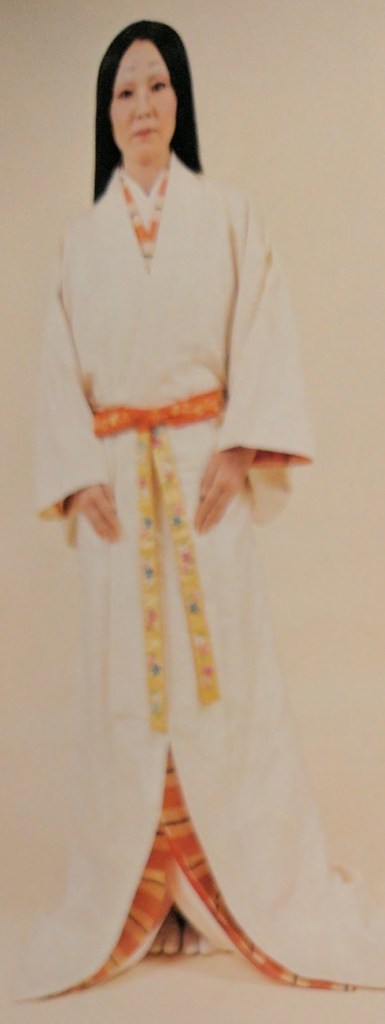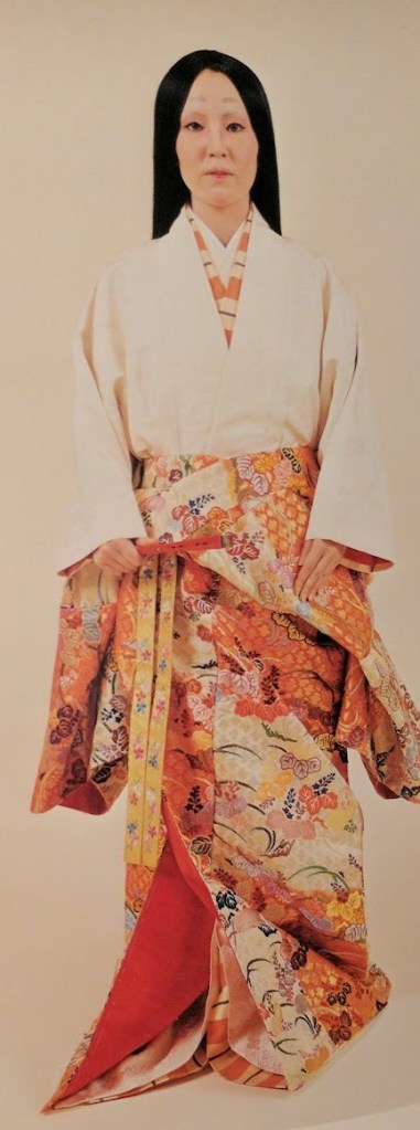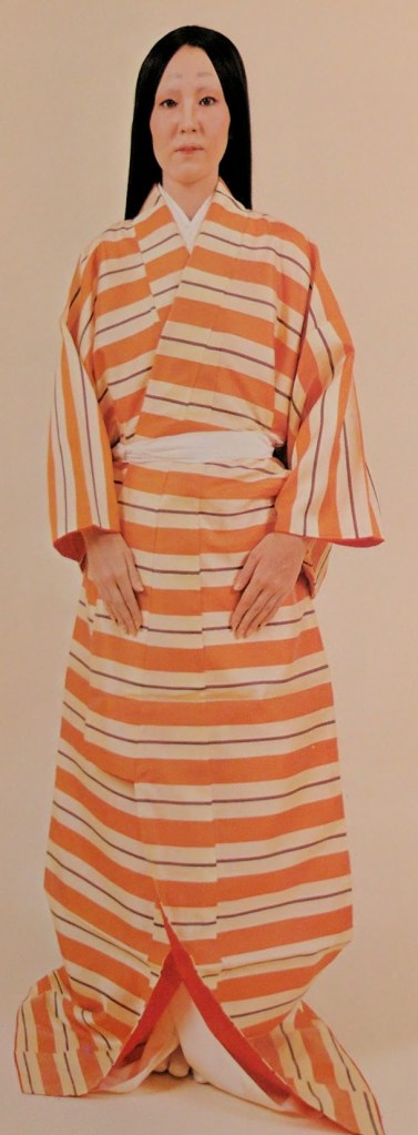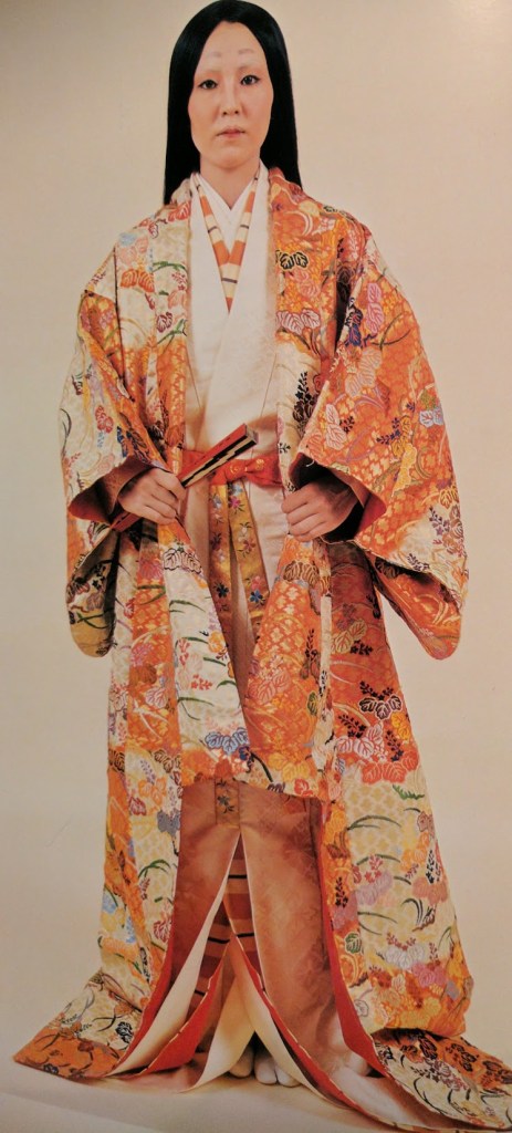 We have few intact extant women’s garments from this period; the garments shown below are museum-quality reproductions based on textile fragments. The term kosode is a general word for a garment with small sleeve openings; the following garments are all specific types of kosode. Most of these layers were made of silk; see the Fabrics section for the closest alternatives available today. Most of these garments can be found in the Patterns section.