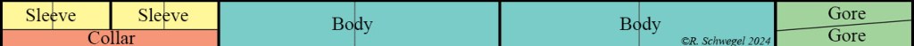 - Sleeves + collar = 163% of garment height, width = 1/3 of garment width