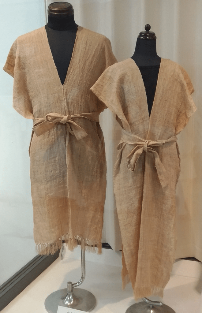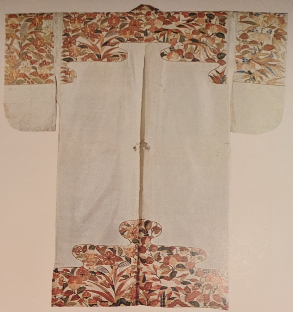 The kantoi is a simple Yayoi period garment which consists of just two long strips of fabric sewn together (there is no shoulder seam). The majority of later garments are variations on this basic theme.