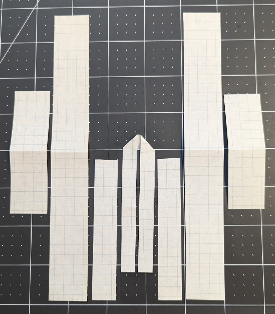 Next, unfold the fabric to mark the stitching lines. I recommend sewing the collar as a series of straight lines: the result is indistinguishable from a continuous curve, and it’s both far easier to sew and more plausible for a time and place where pins were not yet in common use.