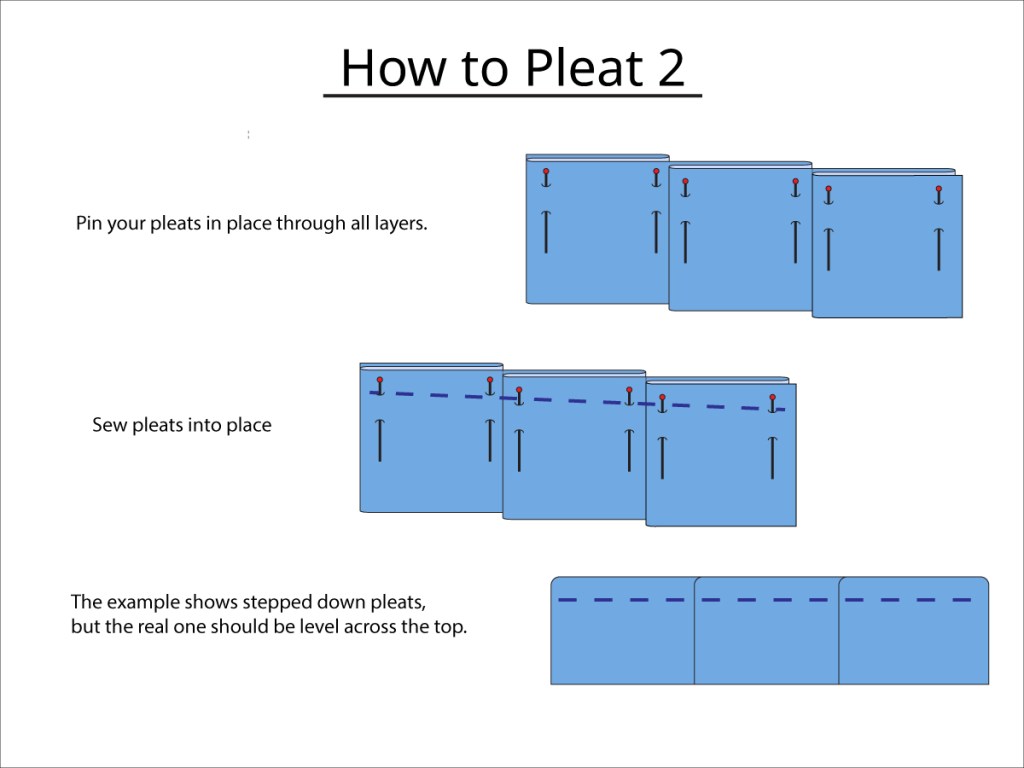 - Sew the pleat along the top of the fabric to secure the entire pleat.