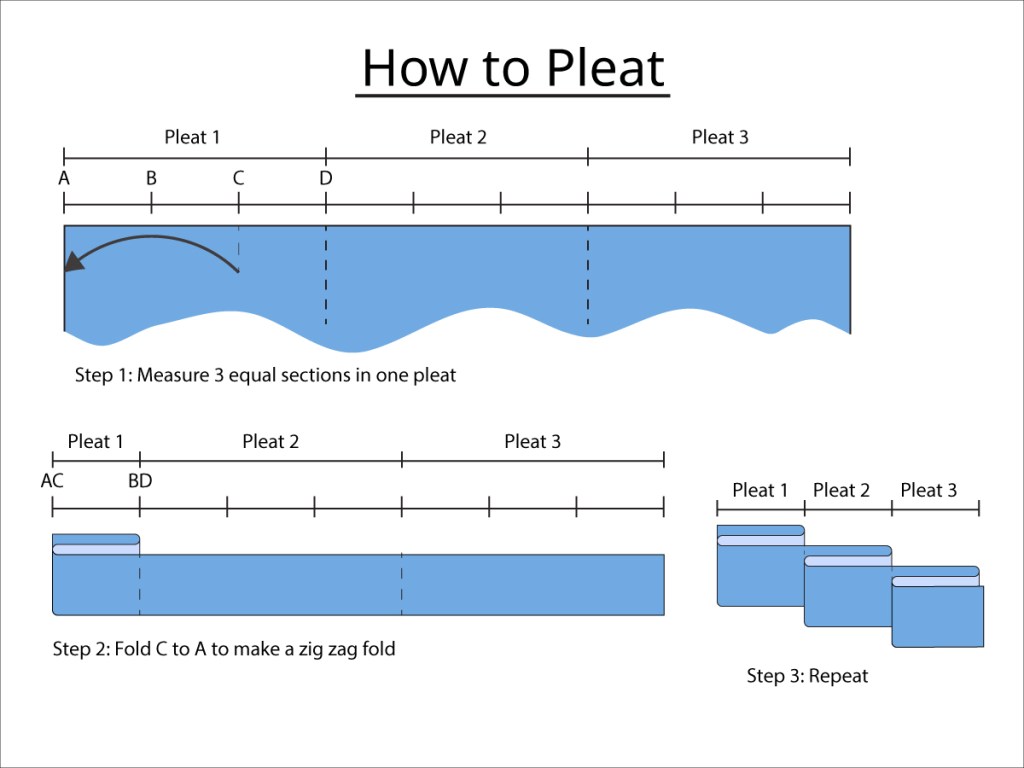 Most basic pleats take a length of fabric and shorten it to a third of the length. To make a knife pleat: