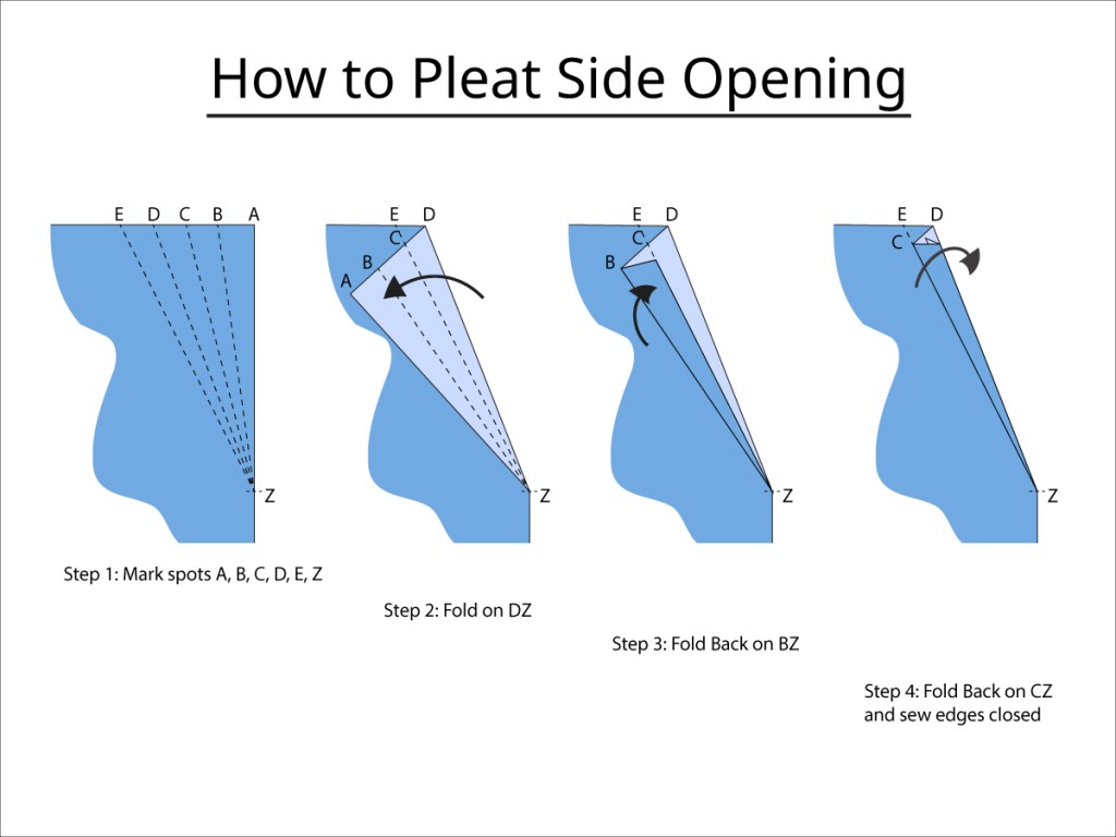 - Fold the fabric back along Line CZ so that line BZ meets with line DZ. Pin this new arrangement in place and remove the other pins from this fold-in.