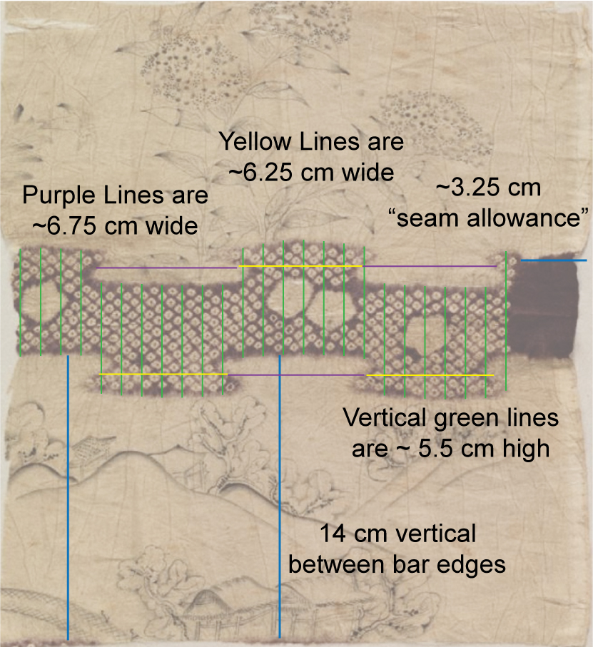 Let’s take some time to consider the details of this piece and what techniques were likely used in its creation. By better understanding this single piece, we can cultivate a larger general understanding of Japanese clothing decoration which will help us in understanding other works of art from this same time and place.