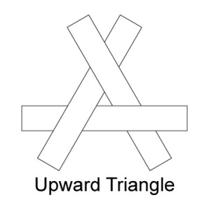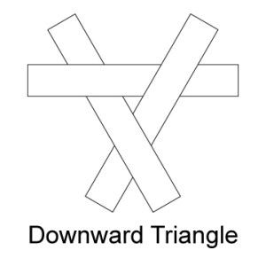 The places where reeds intersect from different triangles. Upward facing triangles are used to lock horizontal row strips into place, while downward facing triangles support the next row of horizontal strip.