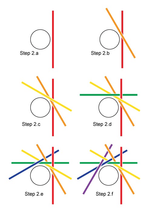2.a.) Begin by placing down a reed to the right of an imaginary circle.