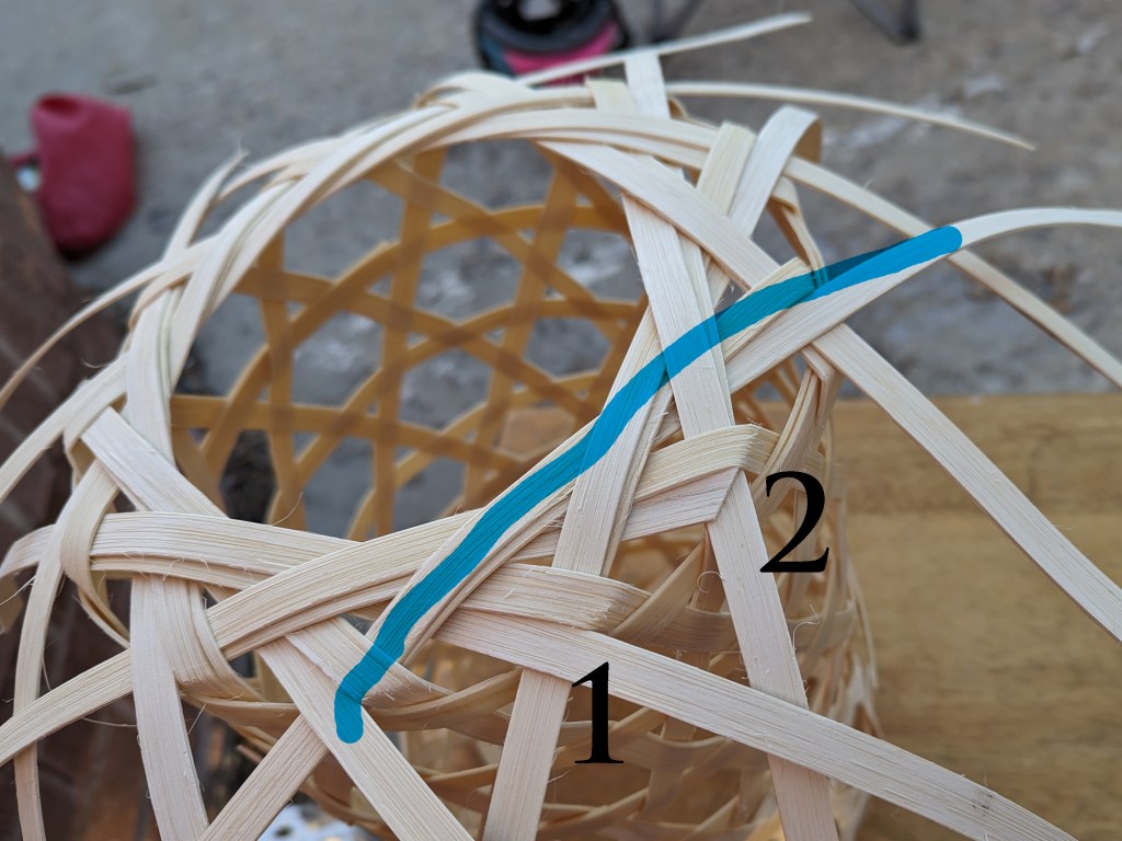 2.b.)The next reed goes on top of that and begins to start a pattern going around the circle.